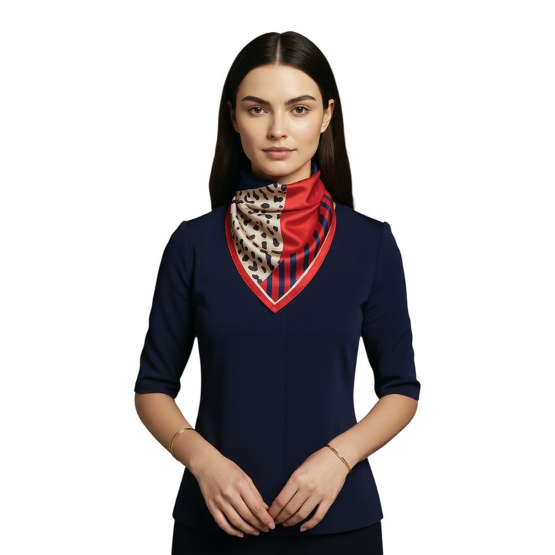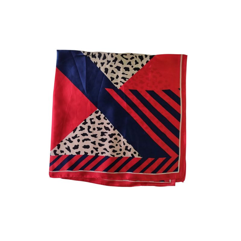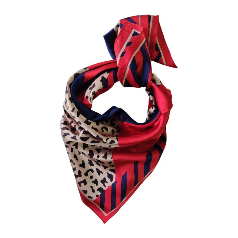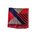 Eșarfă pătrată cu imprimeu mixt și bordură roșie 25TAI22056
