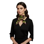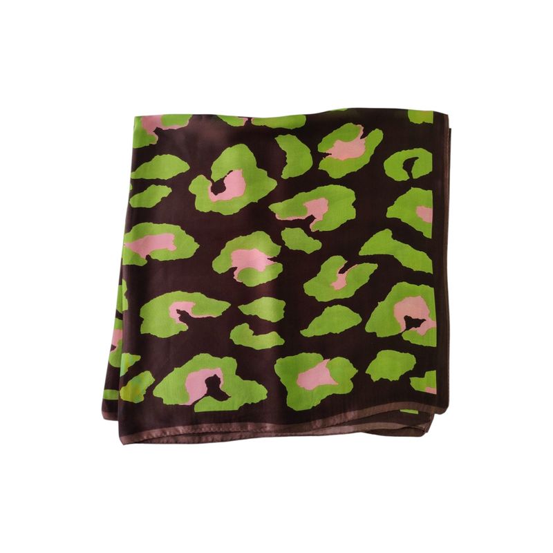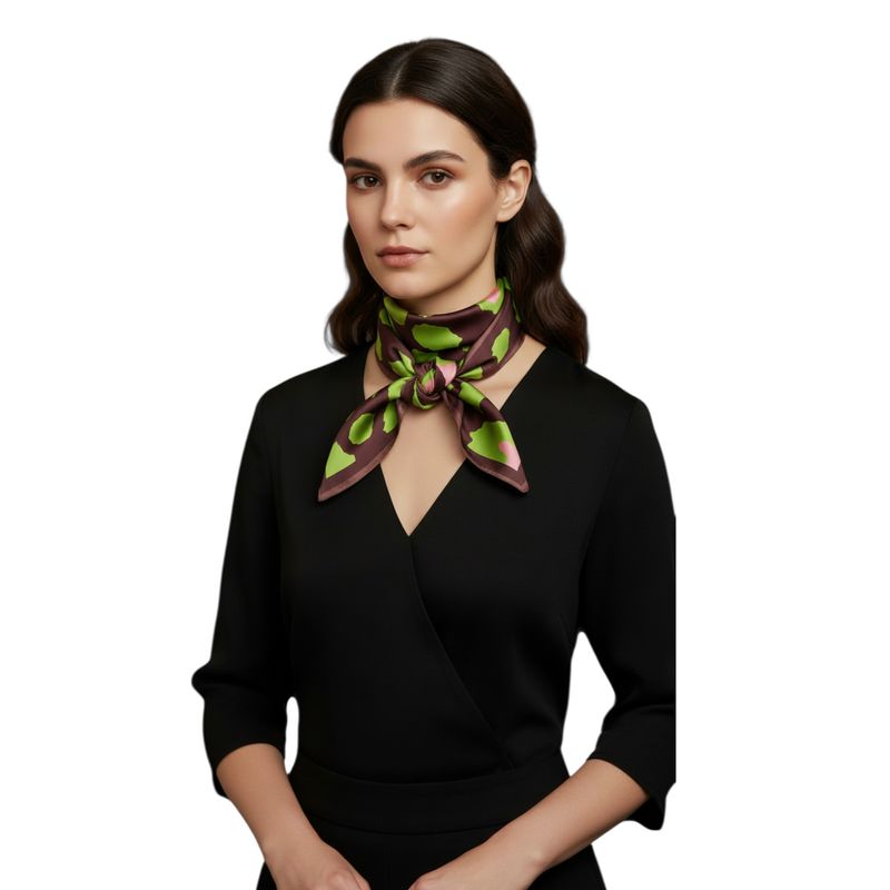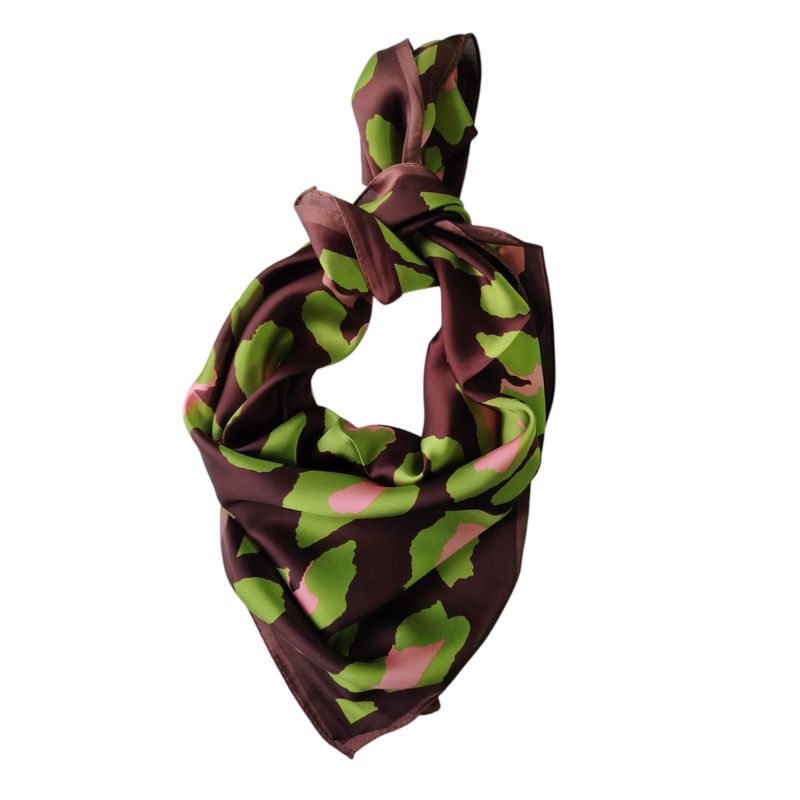 Eșarfă pătrată maro cu imprimeu abstract verde și roz 25TAI22062