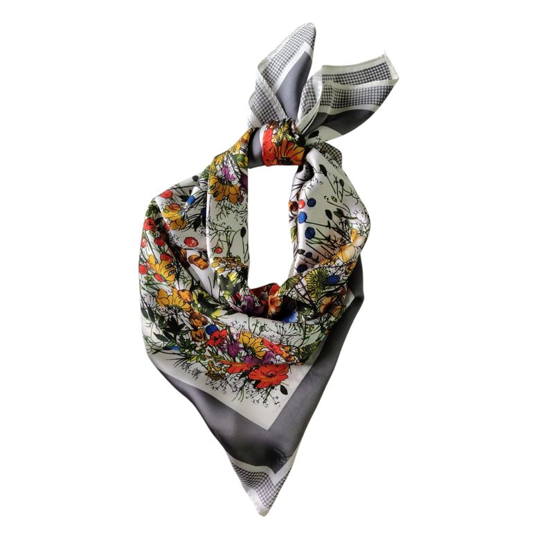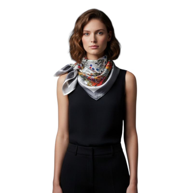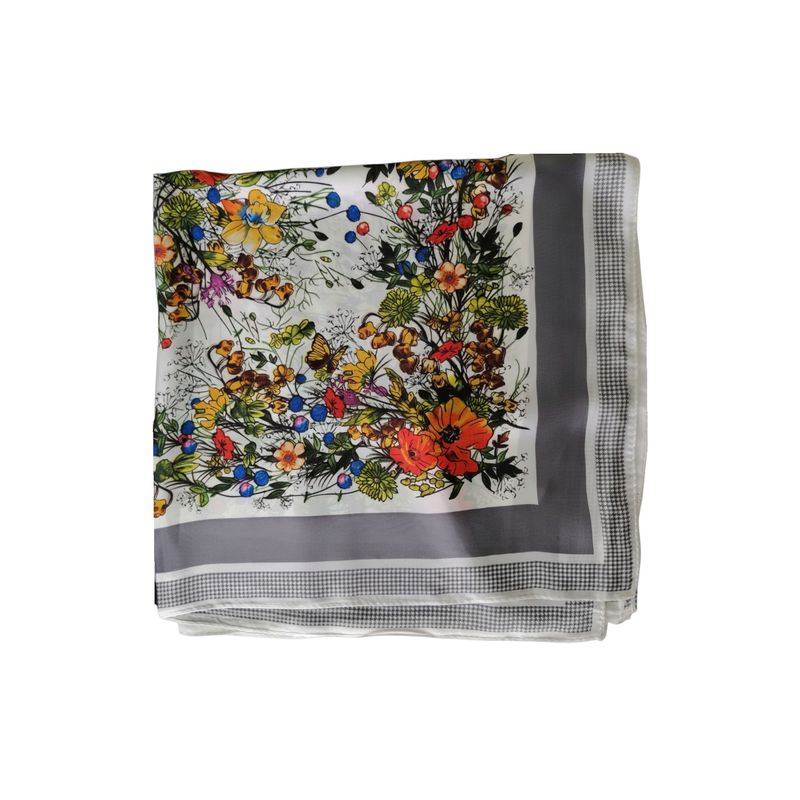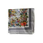 Eșarfă pătrată multicoloră cu imprimeu artistic și bordură gri 25TAI22063