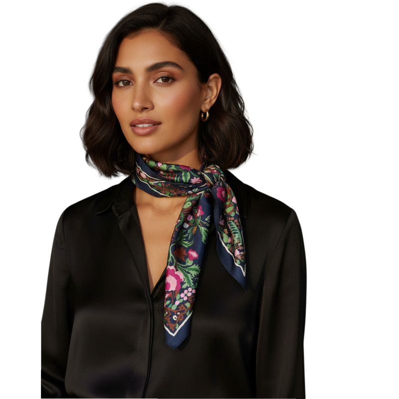 Eșarfă albastră în colțuri cu imprimeu floral bogat 25TAI22071