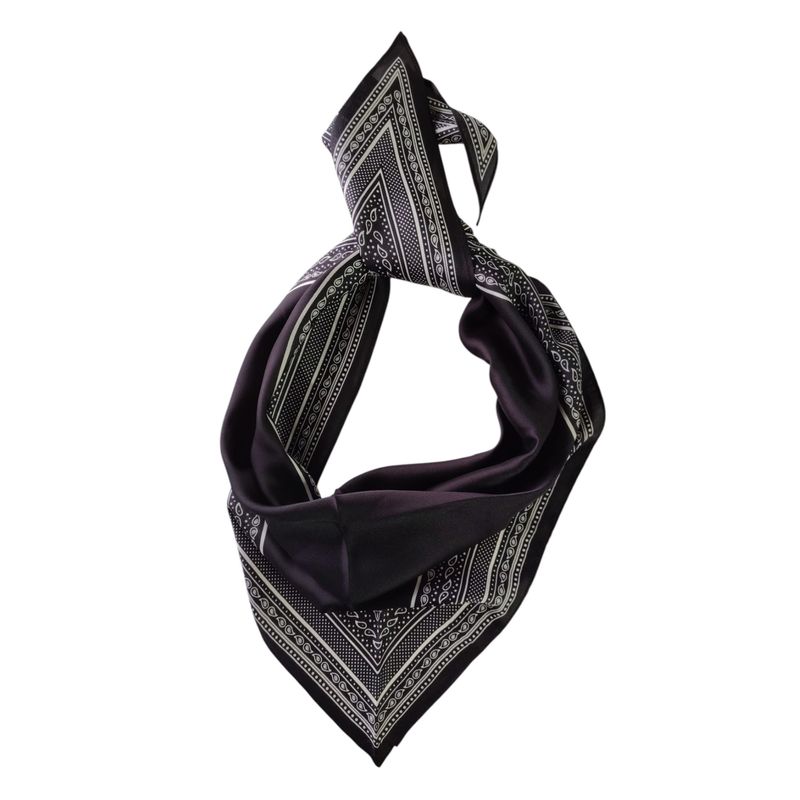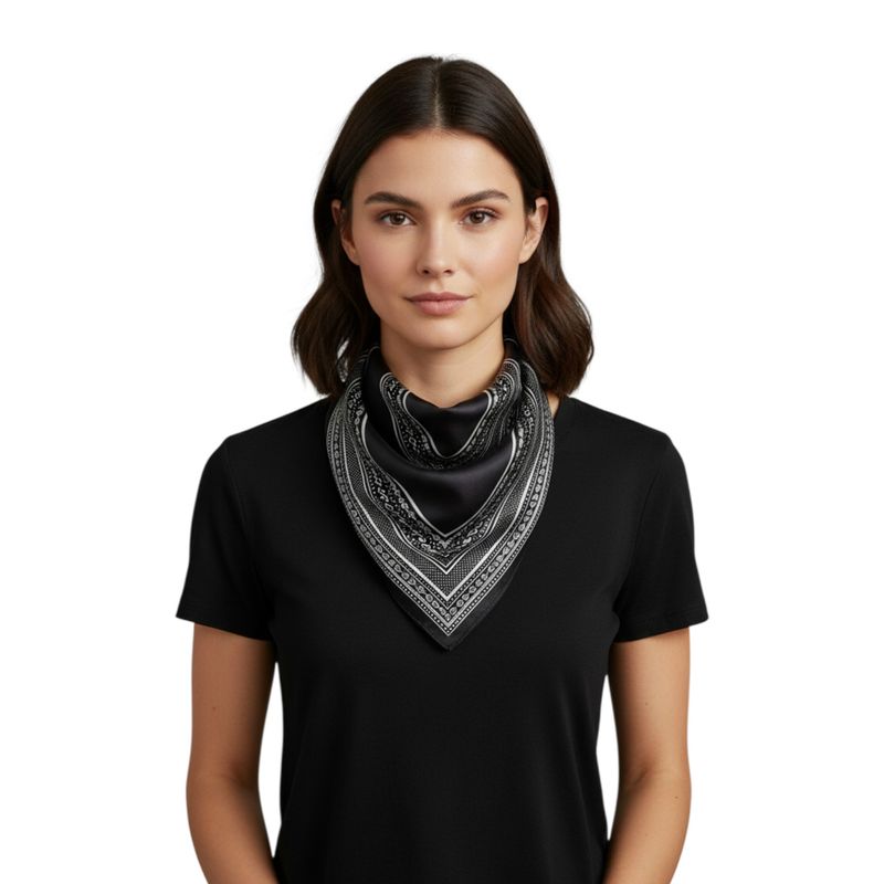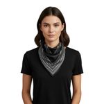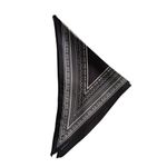 Eșarfă neagră în colțuri cu model ornamental alb 25TAI22073
