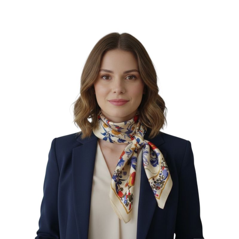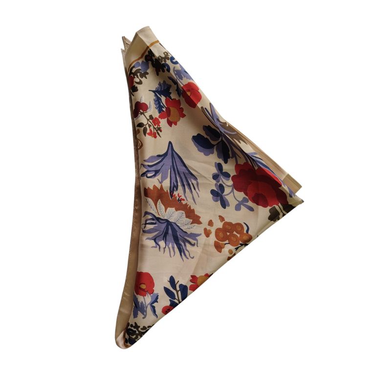 Eșarfă bej în colțuri cu imprimeu floral bogat 25TAI22074