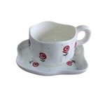 Ceașcă cu farfurioară din ceramică cu trandafiri roșii 25TAI29005