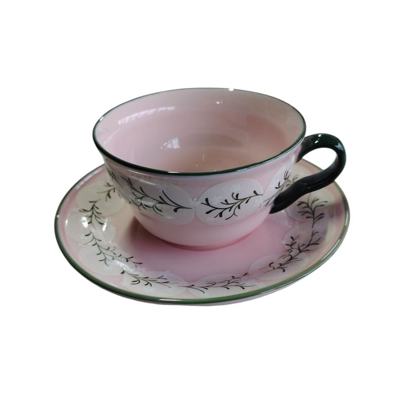 Ceașcă cu farfurioară din ceramică, roz 25TAI29014