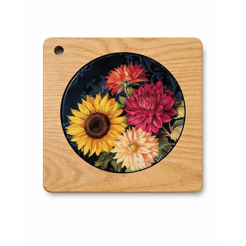 Suport termic pătrat lemn cu inserție ceramică florală 25TAI32025