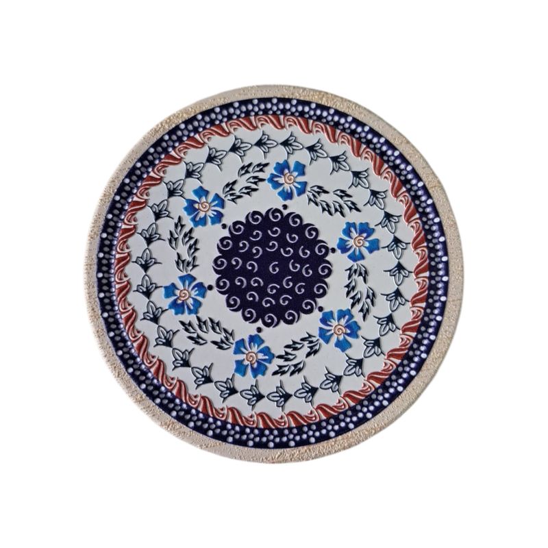 Suport termic rotund din ceramică model floral albastru 25TAI33024