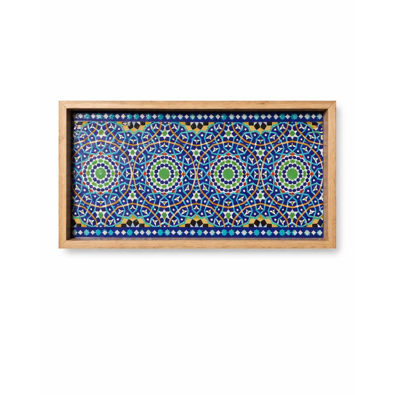 Tavă decorativă din lemn cu inserție ceramică albastră 25TAI60004
