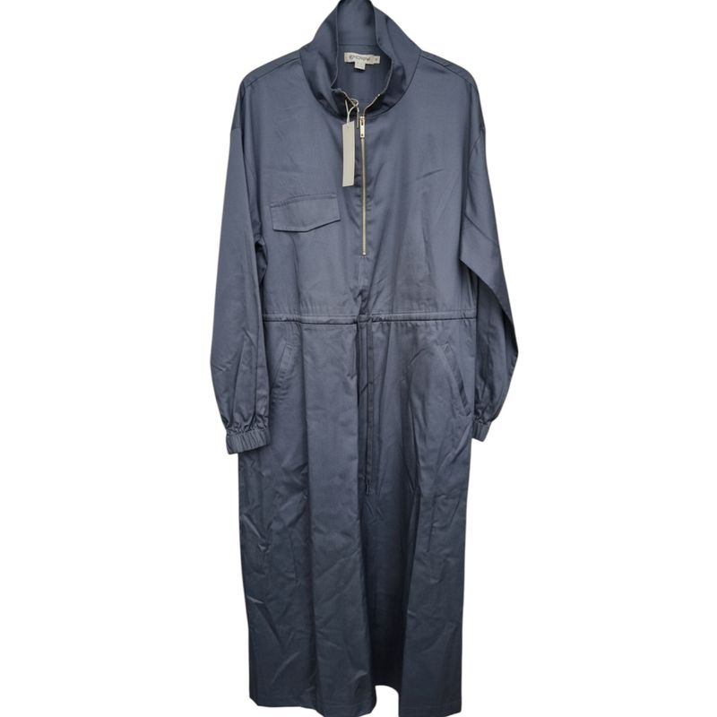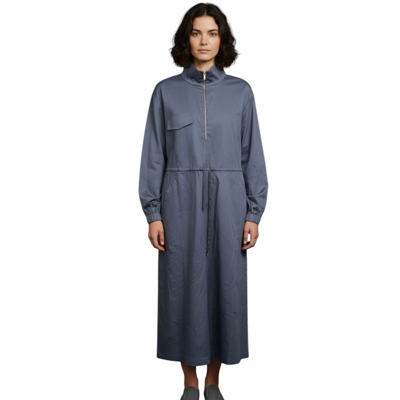 Rochie lungă gri cu fermoar frontal și guler înalt 25ZEN33001