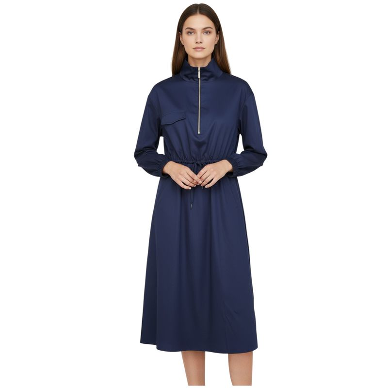 Rochie casual din bumbac cu guler înalt și talie ajustabilă 25ZEN33002