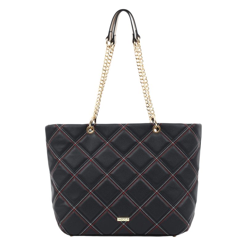 Geantă de umăr neagră matlasată cu lanț auriu 26COS02067