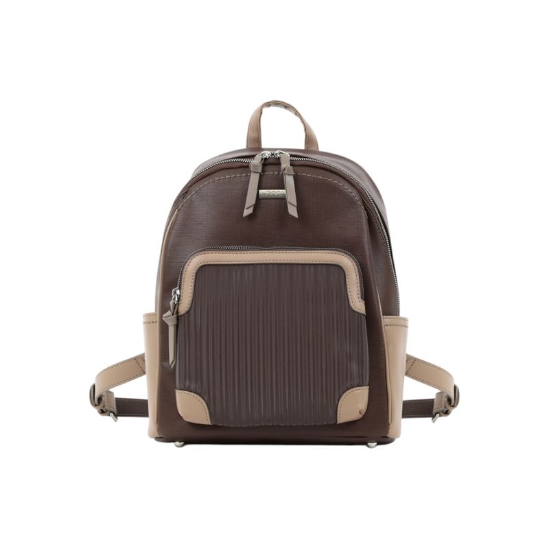 Rucsac DOCA maro cu detalii contrastante bej și buzunar frontal texturat 26COS04101