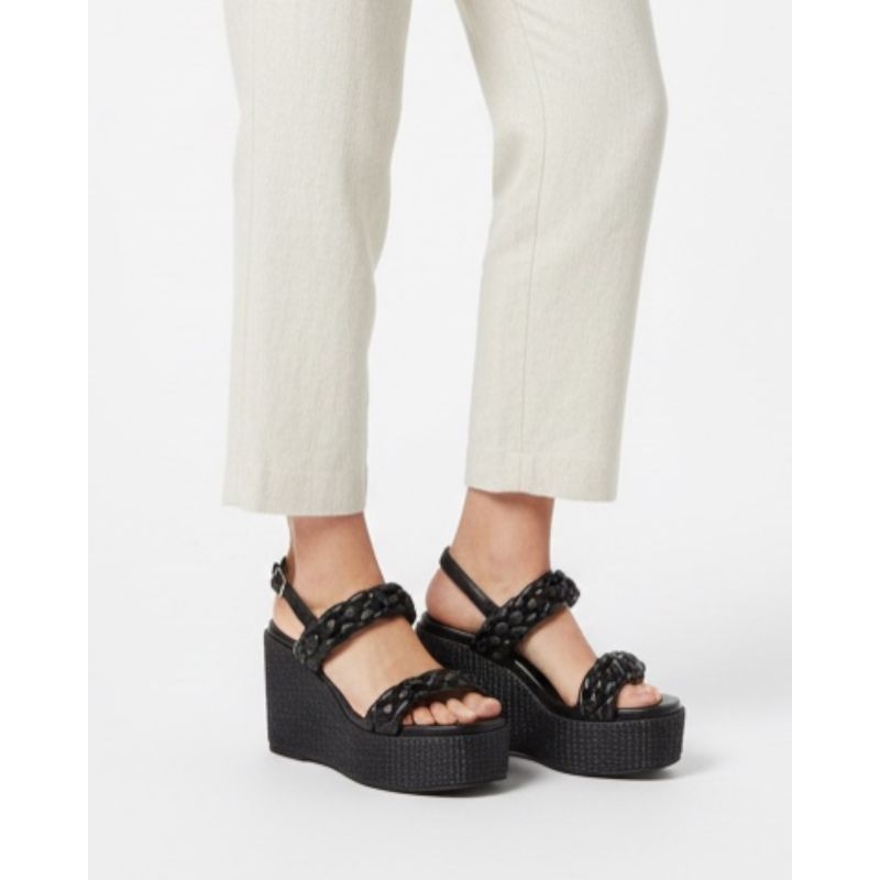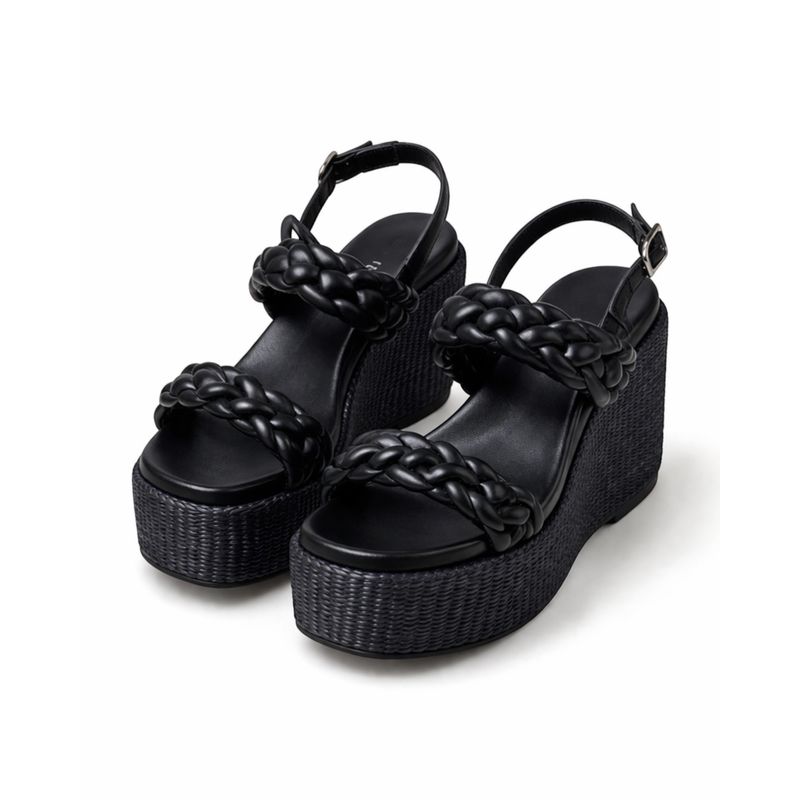 Sandale dama negre cu platforma si barete impletite 26HAT18003