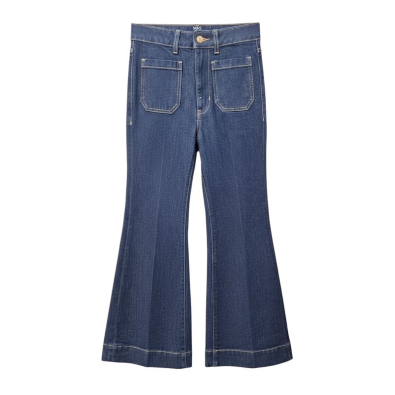 Jeans din bumbac albaștri evazați cu talie înaltă 26KOS35001