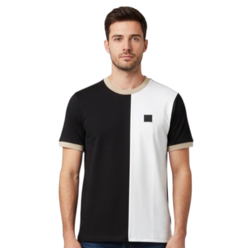 Tricou bărbați – model color block alb și negru 26KOS51001