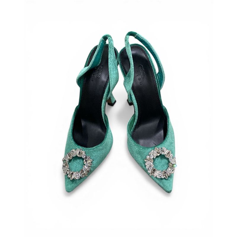 Pantofi dama verzi cu varf ascutit si aplicatie decorativa 26MEX09036