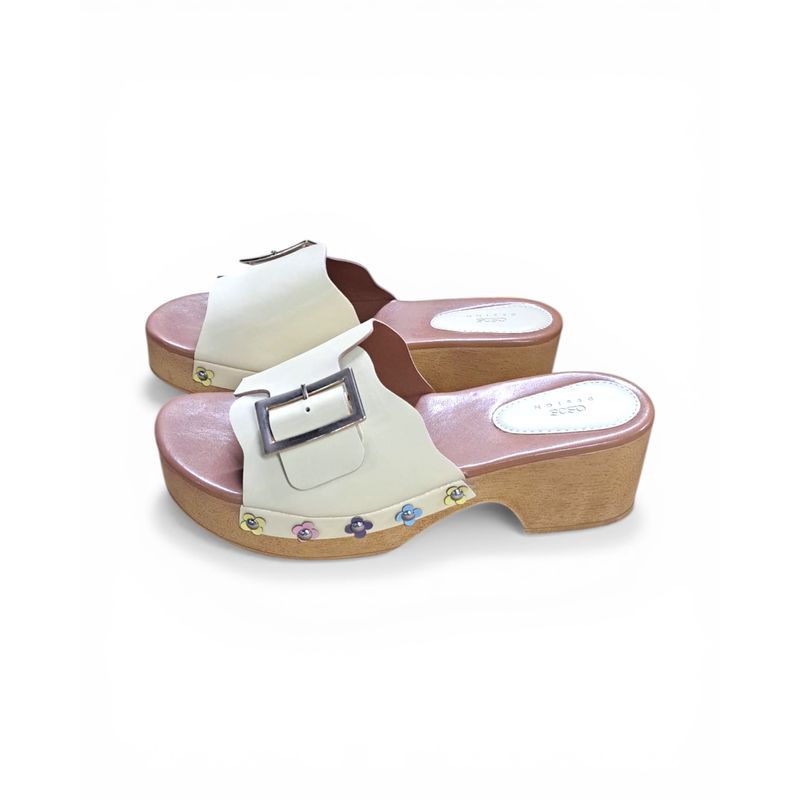 Saboți dama crem cu platformă tip lemn 26MEX09060