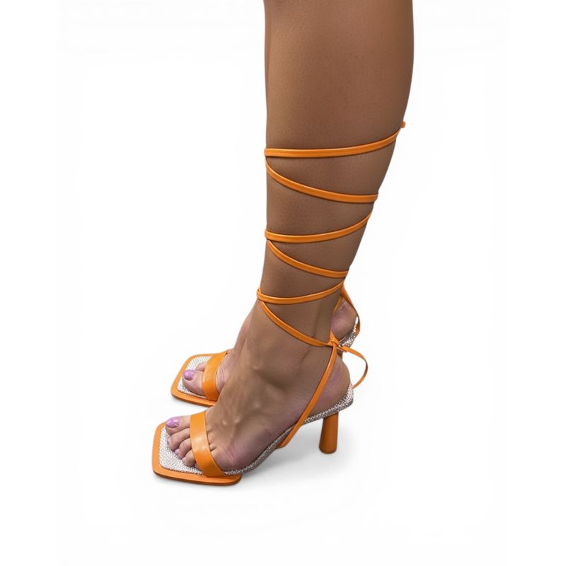 Sandale dama portocalii cu șireturi wrap-up 26MEX09071
