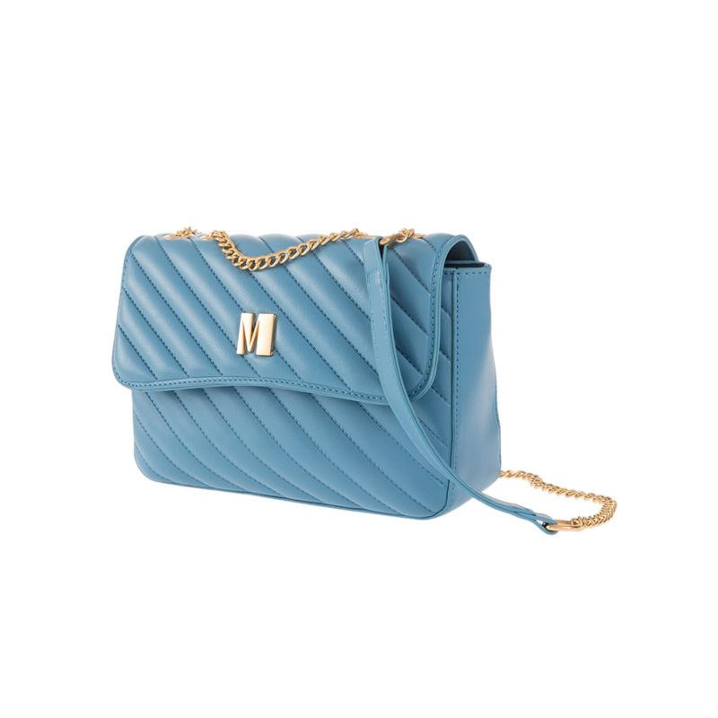 Geantă bleu matlasată cu lanț auriu 26MOD01024