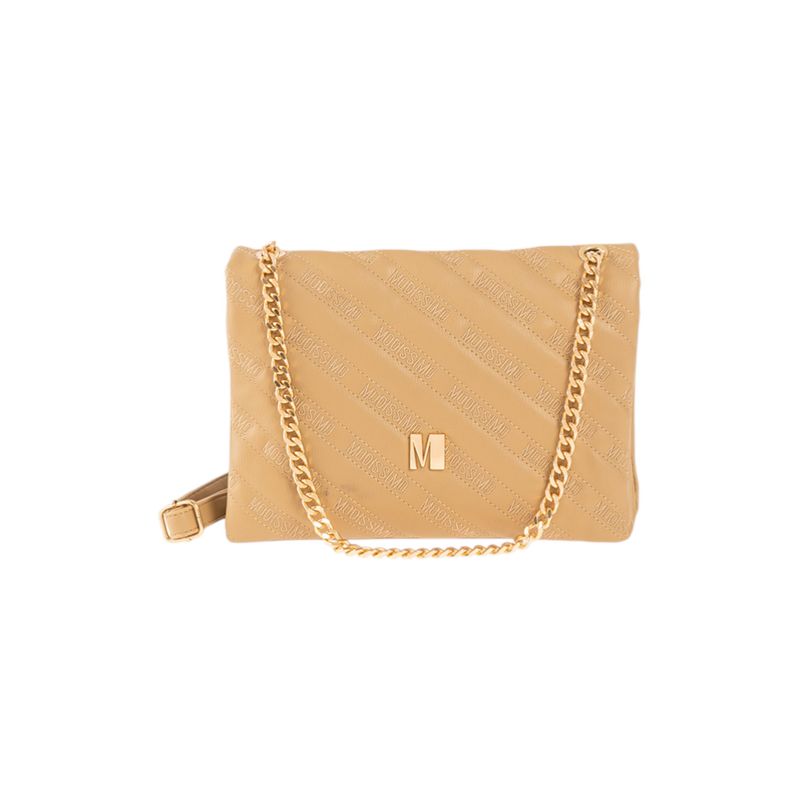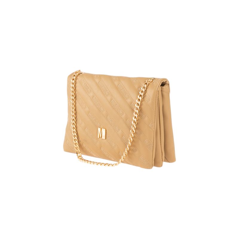 Geantă tip clutch bej matlasată cu lanț auriu 26MOD01085