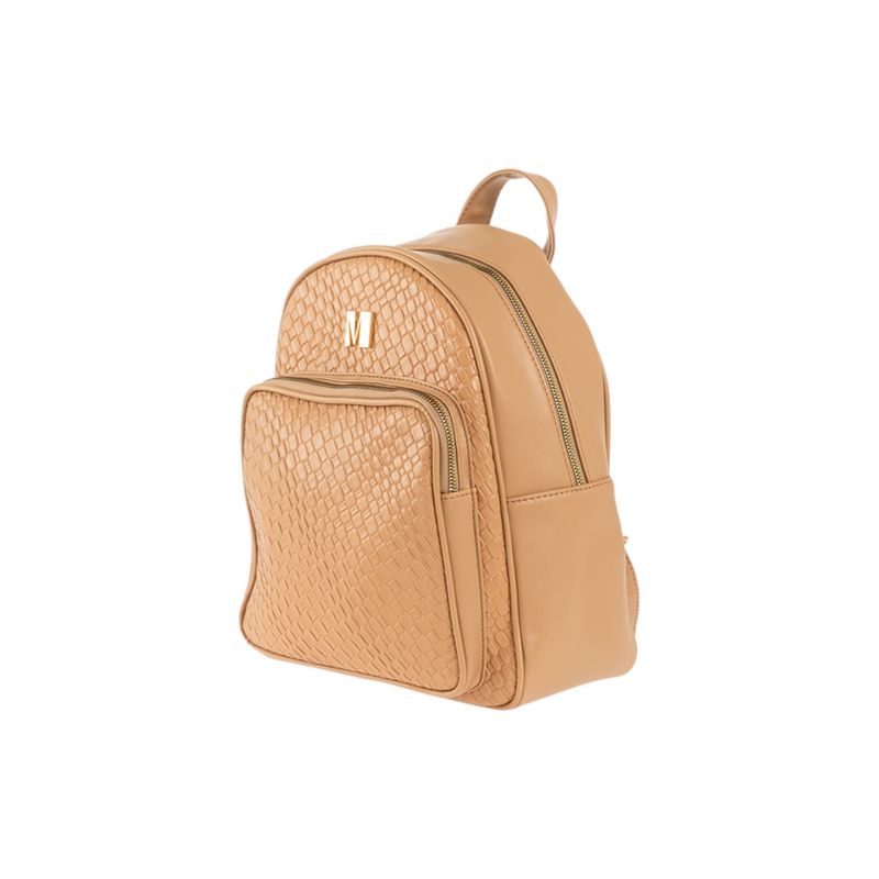 Rucsac tabac din piele ecologică cu buzunar frontal 26MOD01110