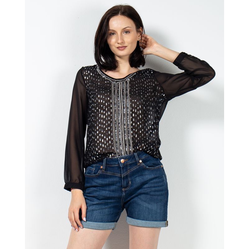 Bluza asimetrica cu maneca lunga si paiete 23KOSF2007