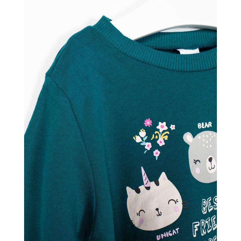 Bluza din bumbac cu imprimeu si guler rotund pentru fete 2116715007