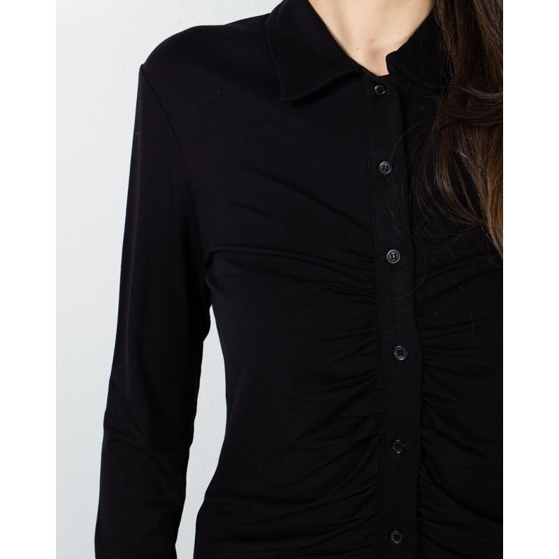 Bluza uni cu nasturi si guler ascutit 23ALNA7016