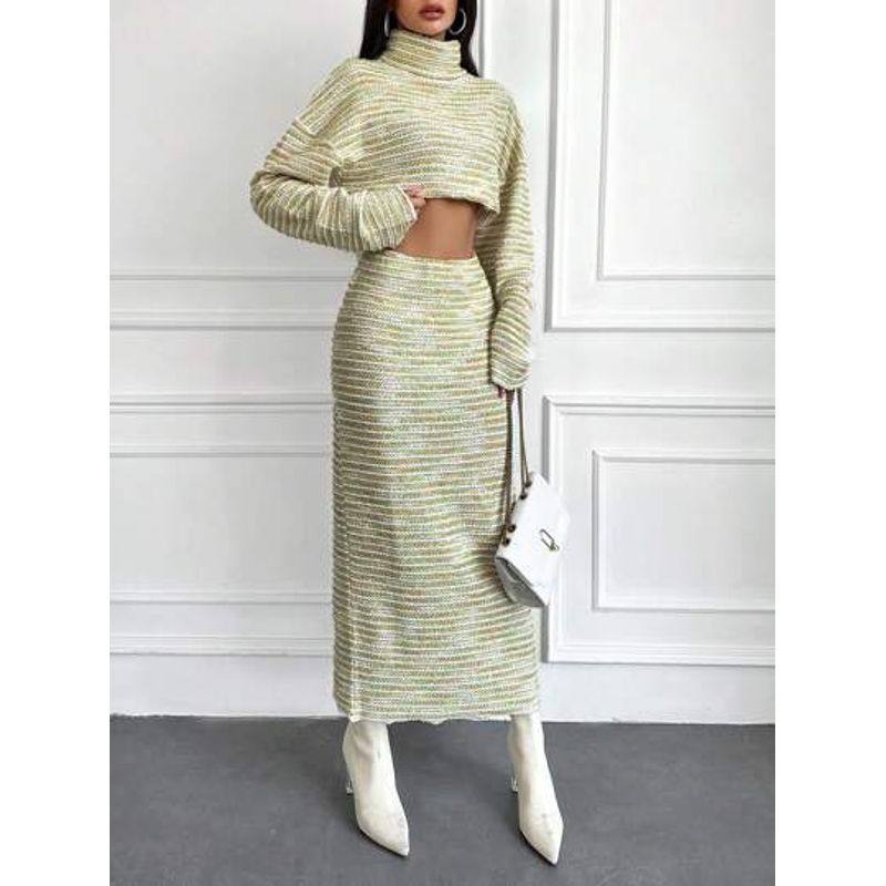 Compleu Shein cu fusta si bluza cu guler inalt 24MAE37163