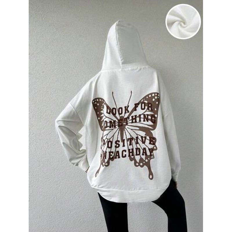 Hanorac din bumbac Shein cu imprimeu motivational pe spate 24MAE36120