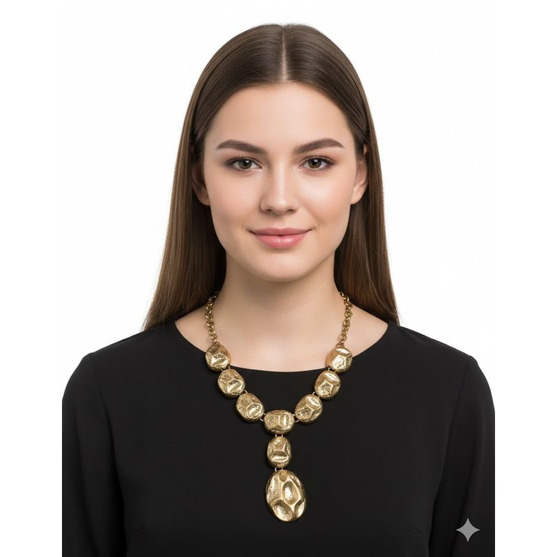 Colier statement auriu cu elemente organice texturate M19A1301012
