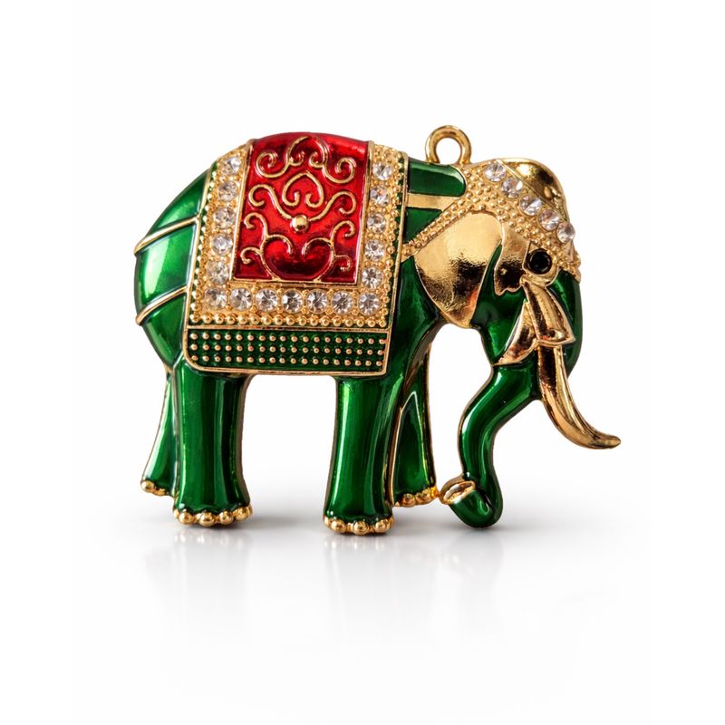 Broșă damă elefant decorativ – verde & roșu M2299401013