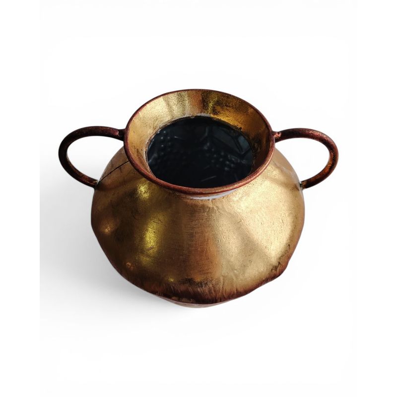 Vază decorativă din metal, Auriu Antichizat cu model vegetal reliefat M67A1201018