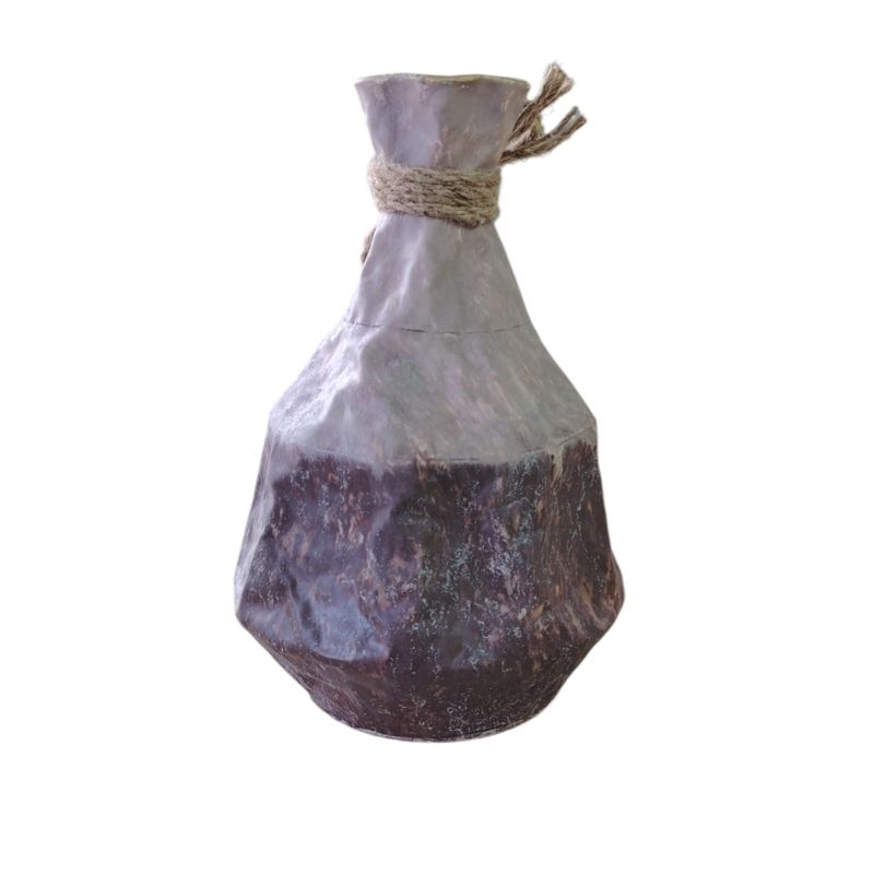 Vază decorativă gri cu aspect antichizat și detaliu din sfoară M67A1301009