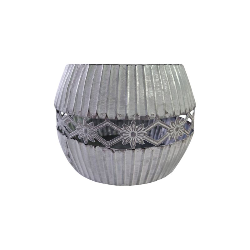 Ghiveci decorativ din metal argintiu cu model floral perforat M71A1201008