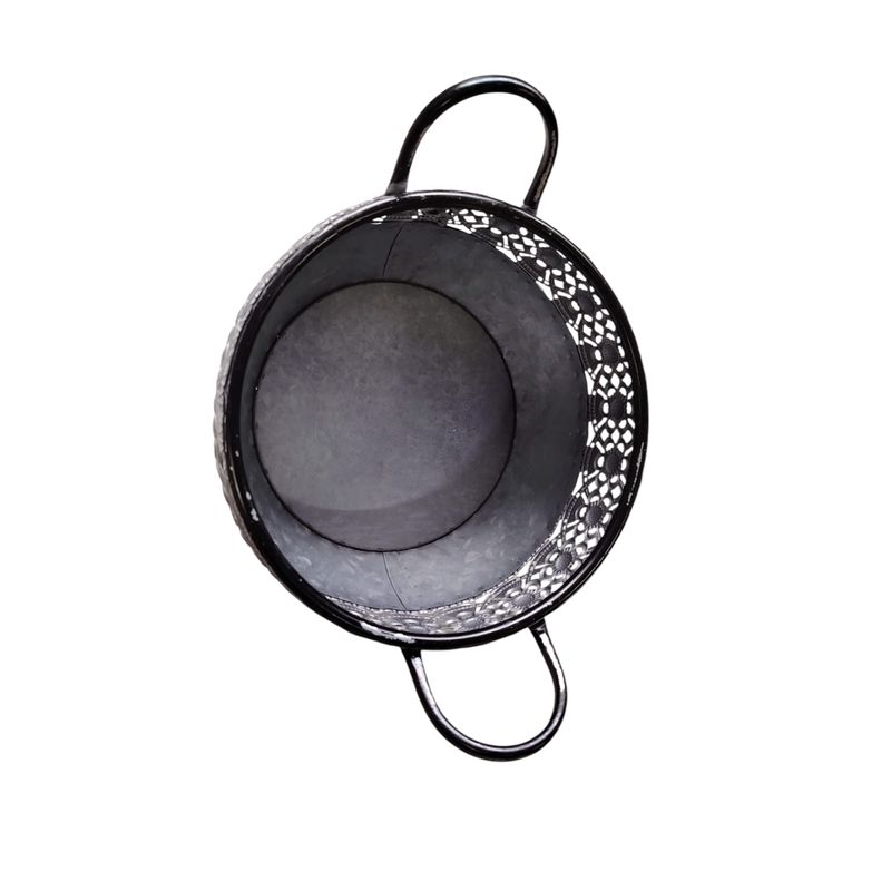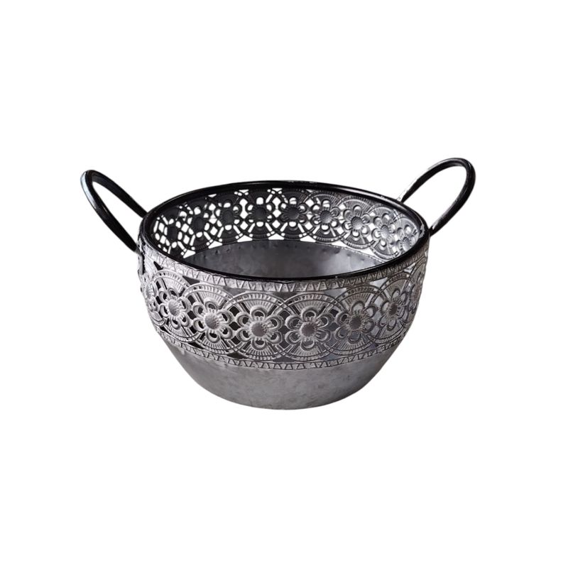 Ghiveci metalic decorativ cu mânere – model floral gri M71A1201023