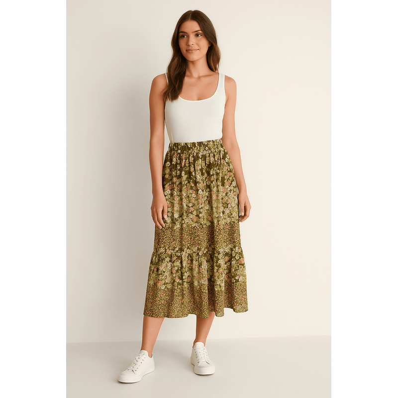 Fustă asimetrică cu imprimeu floral – 100% Poliester N241772001