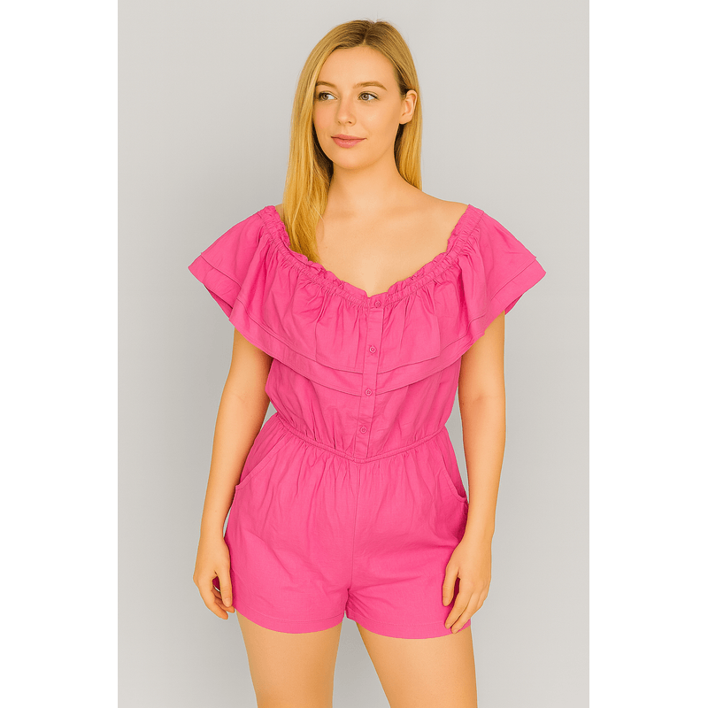 Salopetă scurtă cu umeri goi și volan decorativ – 100% poliester N241788001