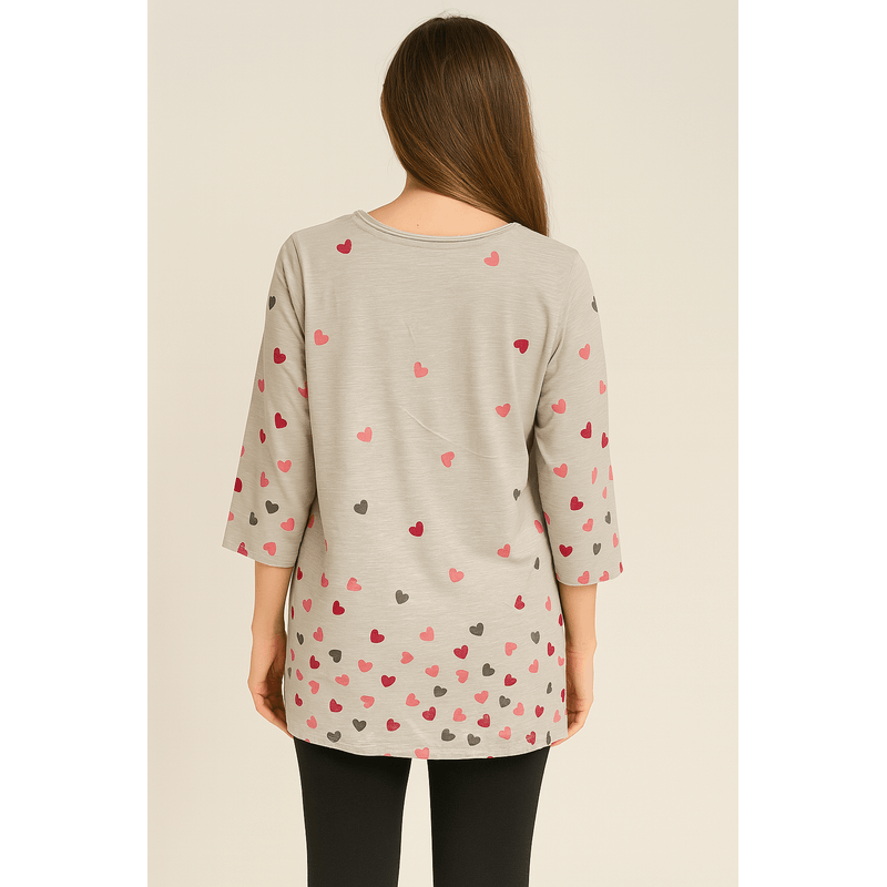 Bluză din bumbac cu imprimeu inimioare și mâneci 3/4 N2417I3003