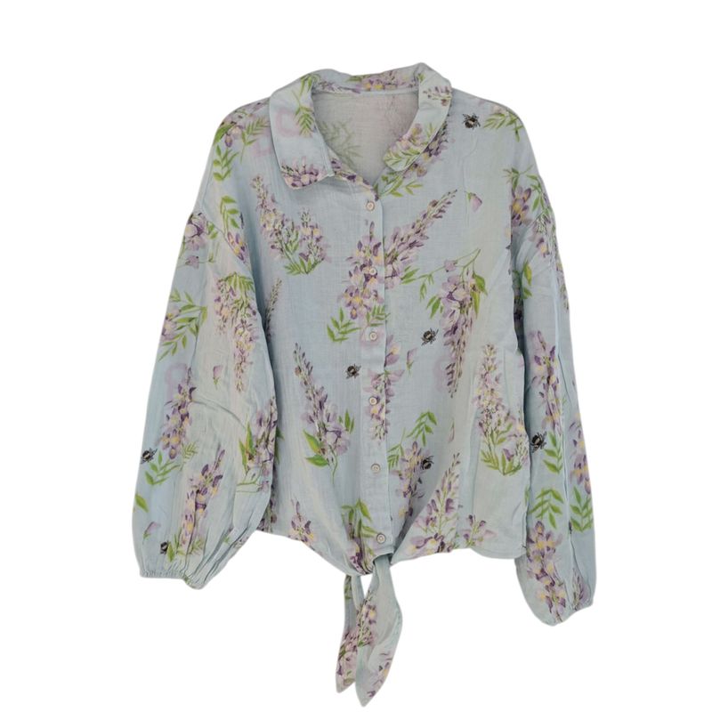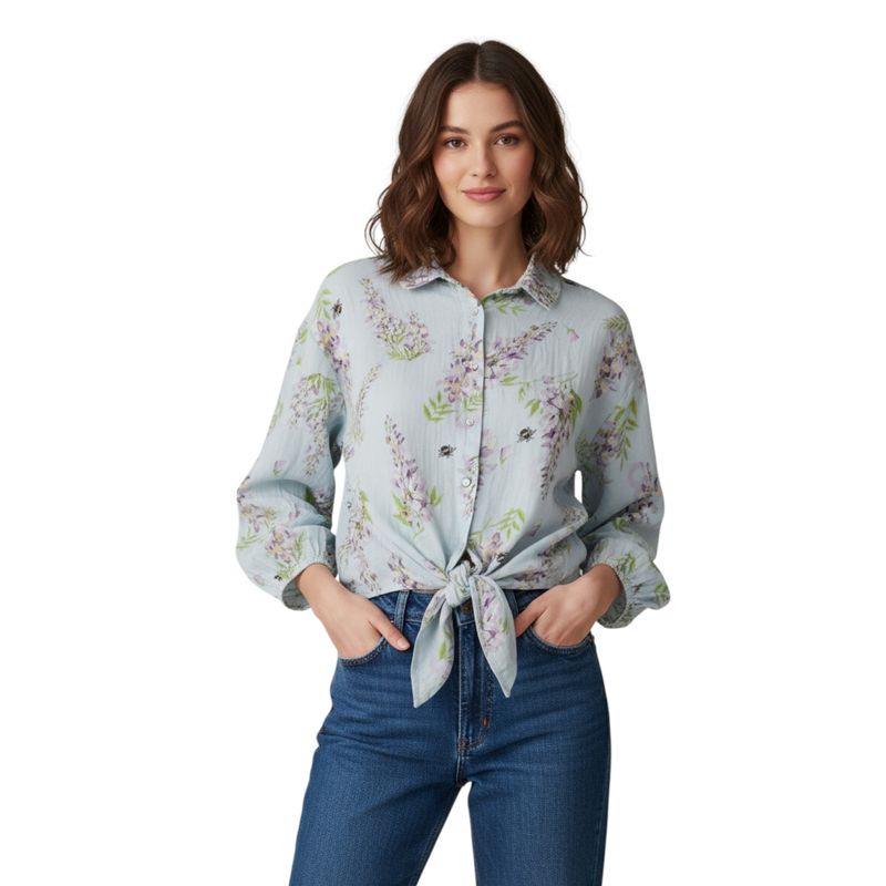 Bluză damă din bumbac, cu imprimeu floral liliachiu N2501F9021