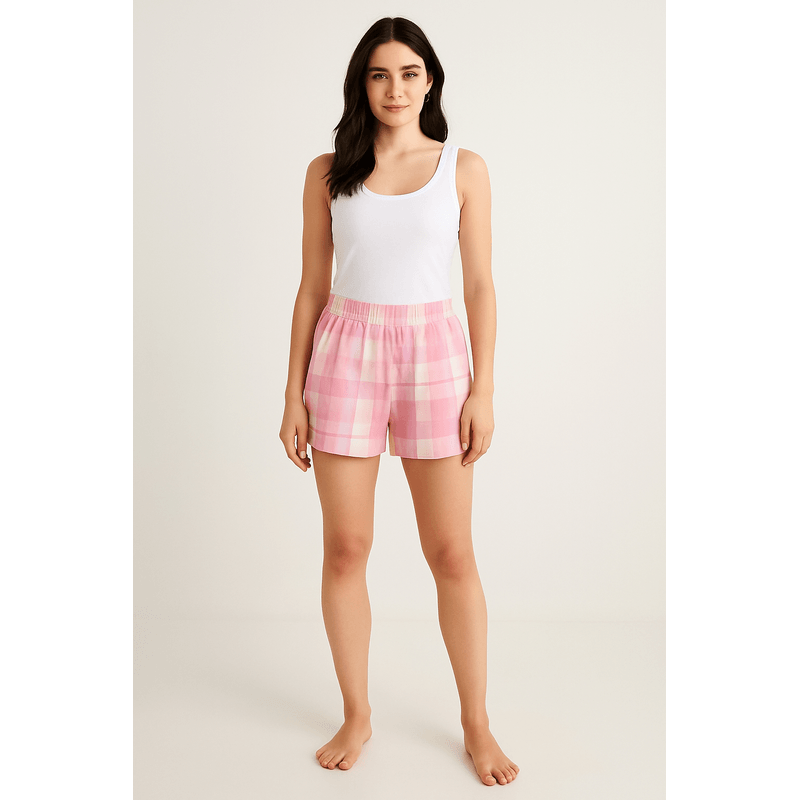 Pantaloni scurți de pijama cu carouri roz – 100% bumbac N2501G3003