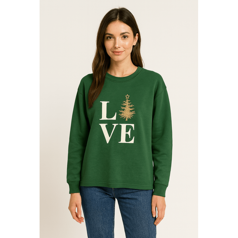 Bluză damă verde „LOVE” – 60% bumbac, 40% poliester N2501H1002