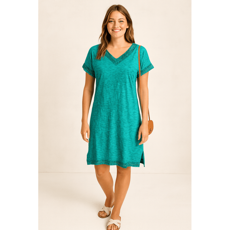 Rochie scurtă cu decolteu în V, 100% bumbac N250306004