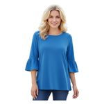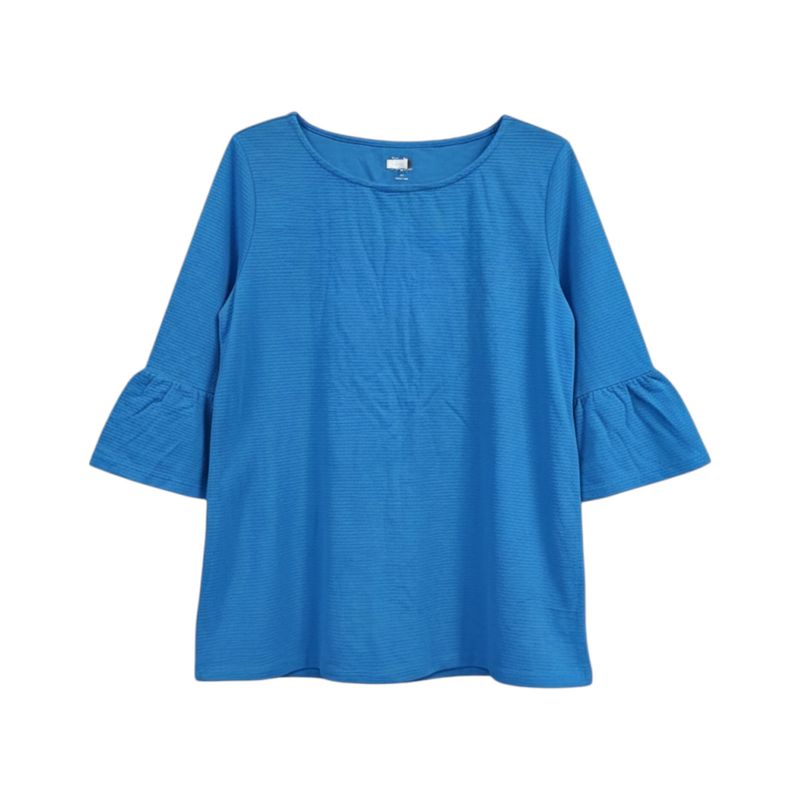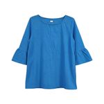 Bluză damă albastru – mânecă 3/4 cu volane N250720032