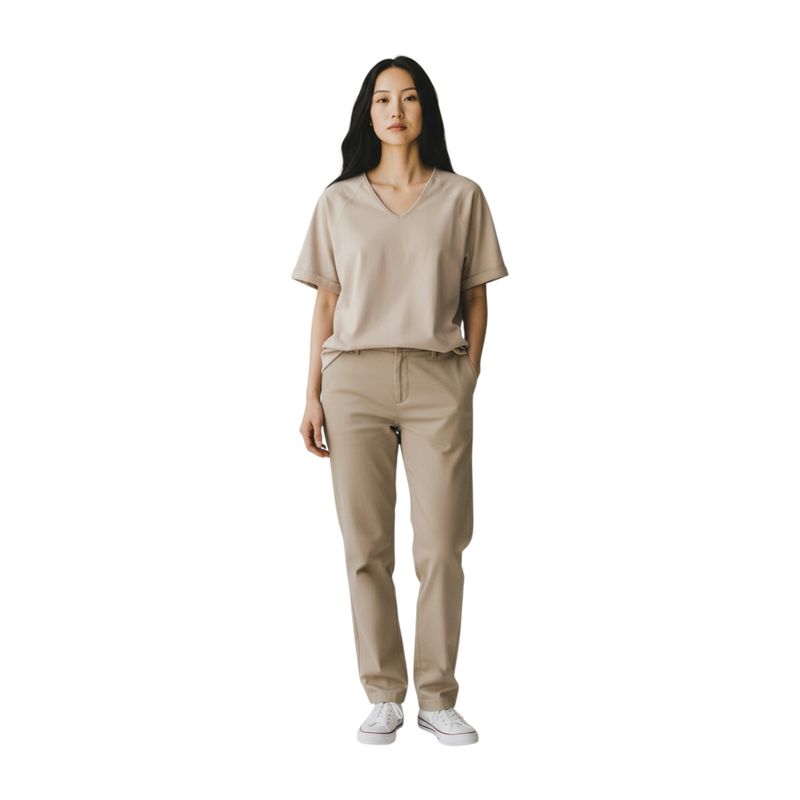 Bluză Damă Roz Pudrat din Bumbac Decolteu V N251016015