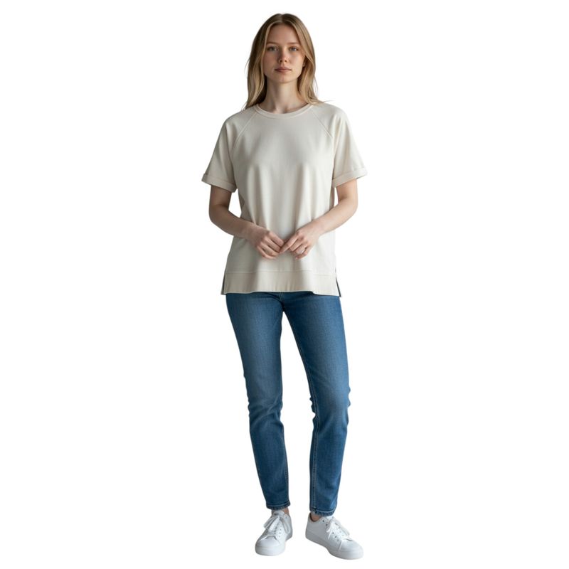 Bluză Damă Albă din Bumbac Mânecă Scurtă Raglan N251016016