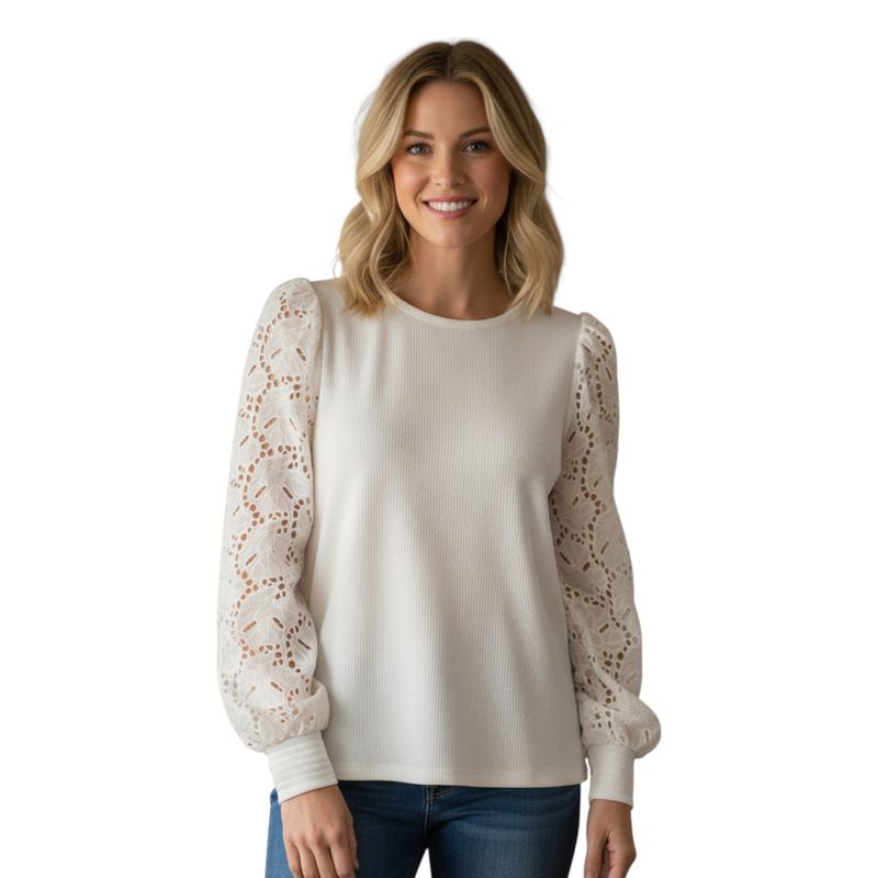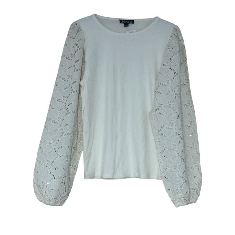 Bluză albă cu mâneci din dantelă J.Crew N260134001