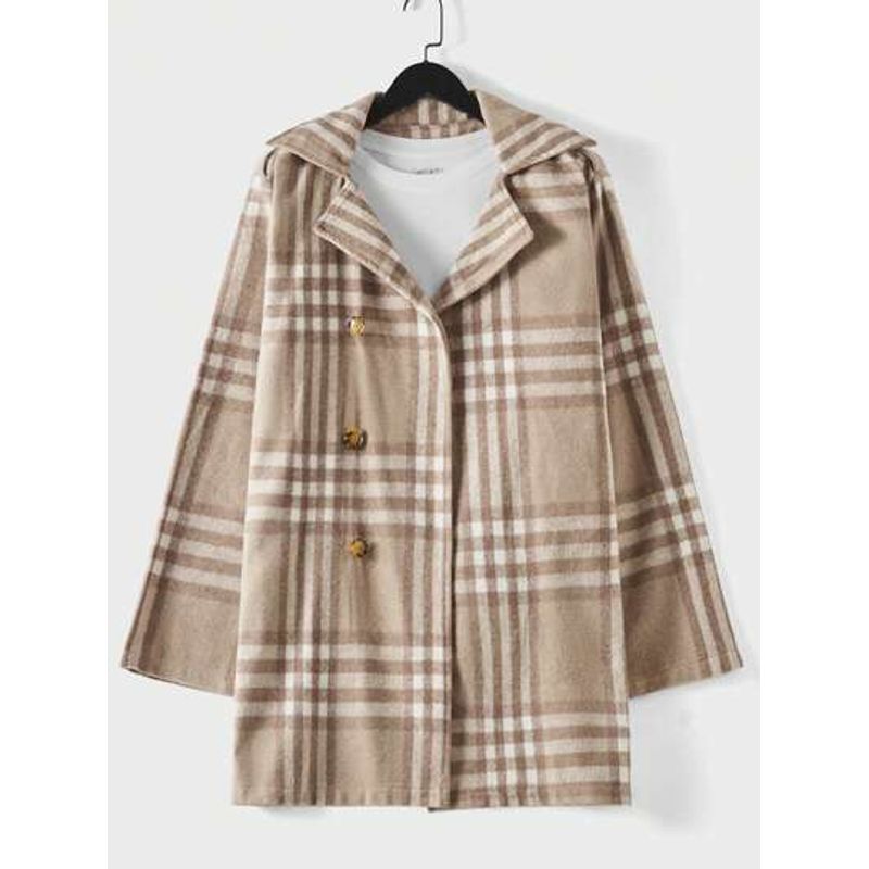 Palton Shein din bumbac cu nasturi in carouri pentru barbati 24MAE39012