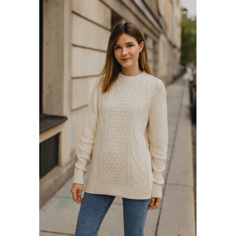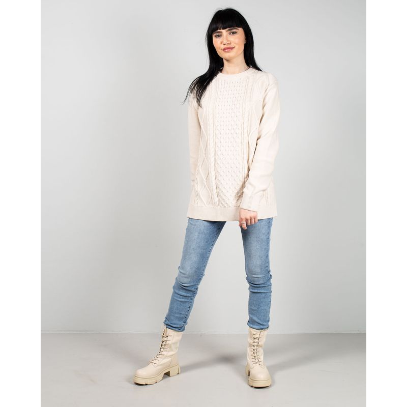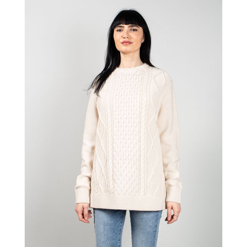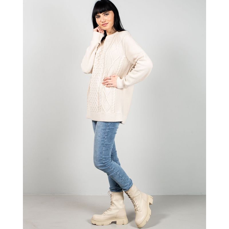 Pulover lung din bumbac tricotat cu torsade 25MKF02014