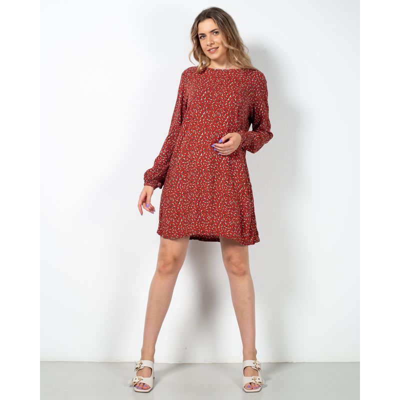 Rochie scurta cu imprimeu si maneca lunga N230436012